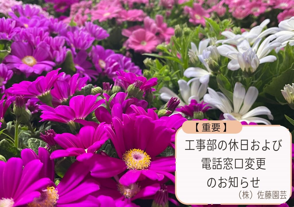【重要】工事部の休日および電話窓口変更のお知らせ